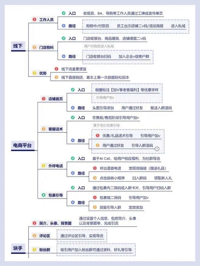 小红书、微信、抖音、快手、电商平台,线下引流、知乎、B站