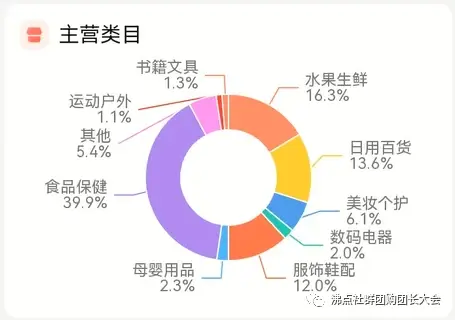 主营类目排名:食品保健、水果生鲜、日用百货、服饰鞋配