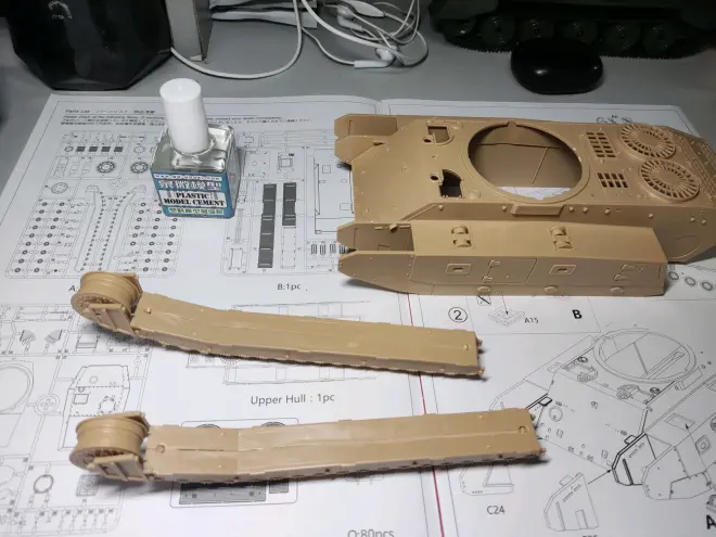 在此之前我只接触过麦田1/35 4号H(早期型)模型,车体是要自己上胶的。而这一款不需要自己上胶,非常的友好,也可以节约溜缝胶的量,不太友好的就是行走系统(小轮子你得让它不掉下来)。