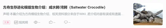 本篇介绍为方舟模组生物介绍,相关资料部分来自于WIKI或创意工坊,若介绍内容有误或有遗漏欢迎在评论区指出。