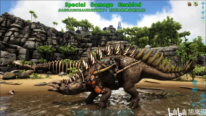 将军龙,一种比较冷门的中国剑龙。在现实中,将军龙是一种体长6米左右的中型素食恐龙,与单脊龙、永川龙、中华盗龙等凶猛掠食者共存。在马普龙和永川龙这两大知名兽脚类加入史前野兽模组后,作为永川龙共生物种的将军龙也于今天与锐颌龙(Genyodectes,一种角鼻龙)一同更新。相比集聚了最好的外界创作资源而表现令人唏嘘的马普龙,以及头槌伤害比啃咬更高的永川龙,将军龙的表现觉得称得上是精彩。