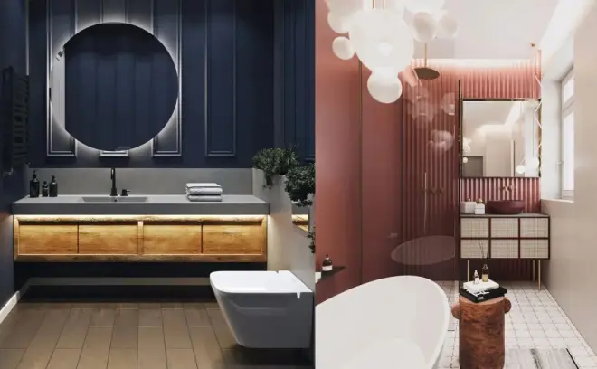 不同的是深度上的设置,烘干机上方吊柜的深度依然保持600mm,而洗手台上方吊柜深度是300-600mm,吊柜的高度一般在600mm,其底部离地1800mm,方便预留洗衣机和烘干机叠放的高度。