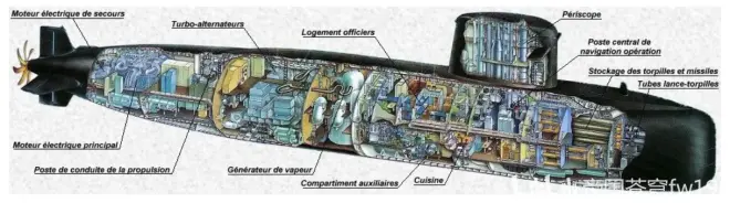 在法国人的计划中,这是一艘长113.75米,耐压壳最大直径为8.5米,浮航和潜航排水量分别达到4868吨/ 5990吨的庞然大物,预计采用热功率为60至72MW的核反应堆,最大速度可达23节,潜深则为250米。在武备方面则是可以安装8门550mm发射管+ 20枚鱼雷备弹。