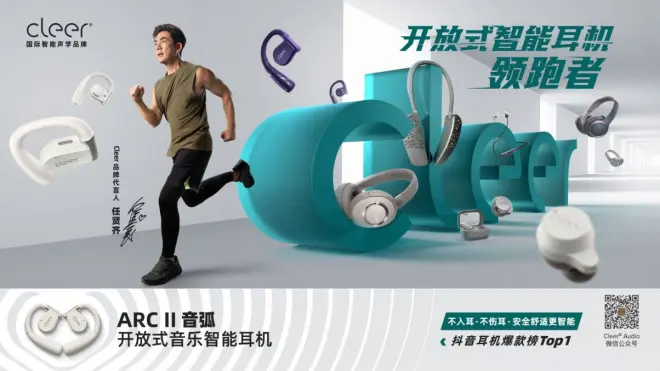 值得一提的是,Cleer在2023年初推出的开放式智能耳机领跑者Cleer ARC II音弧,在前代的基础上进行了全面的创新和改进,整体功能更加完善,最终也是斩获了618抖音耳机爆款榜TOP1的好成绩。这不仅体现了消费者对优秀产品的共同选择,也是大众对Cleer品牌认可的表现,相信这次与实力艺人任贤齐的合作定能助力进一步扩宽市场,再现Cleer ARC II音弧作为领跑者的风姿。