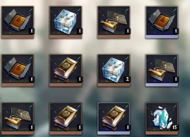 如图的四个箱子就是材料箱子,分别是低级中级高级特级材料,完全一模一样,只不过低级只能选一个,中级是3个,高级9个,特级27个。而突破2也就花10个左右,可以说材料完全不需要刷,至少在你拉满一整个队伍之前是这样