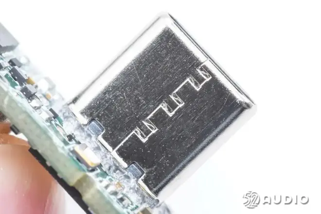 Type-C充电母座特写,雕刻型号“KRCONN”来自深圳精睿兴业科技有限公司。