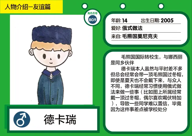 除了上述角色分类以外,还有一种视频角色分类,那就是童年篇,是指低于12岁以下的角色,偶尔也会在视频中出现,截止目前童年篇的角色共6个,分别是李琳达,苹娜,莱布乐,柚美雅和柚海子,以及即将上线的新人物:快乐小奇(后续会上线童年篇的人物介绍)
