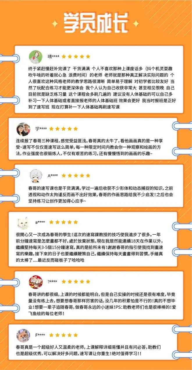 图文教程可以传递的毕竟有限,针对这些问题,春哥在【速写专项课】里会帮大家逐步拆解,建立正确的速写绘画训练习惯。