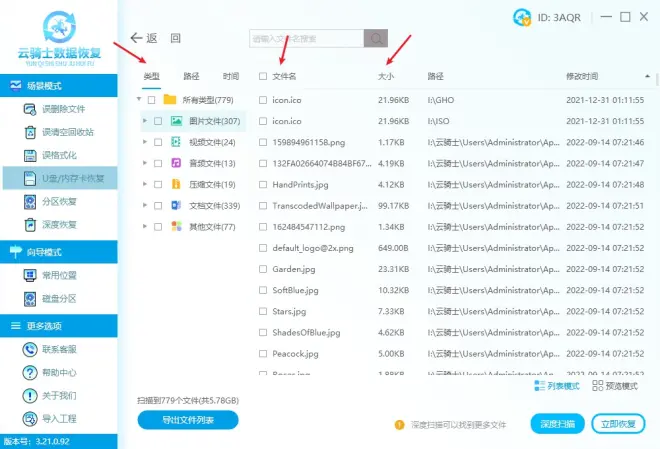 软件版本:云骑士数据恢复软件 3.21.0.92
