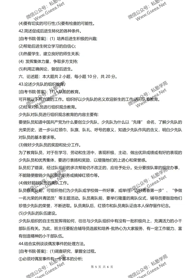2022年10月自考《00412小学班主任》真题和评分参考的评论 (共