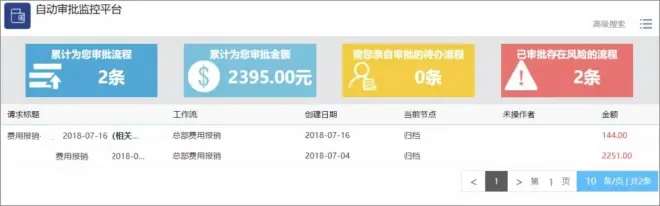 其中包括业务的真实性、票据的合规性、金额的准确性、以及是否超出预算、单据的完整性等,可以清晰了解所有审批托管和风险情况。