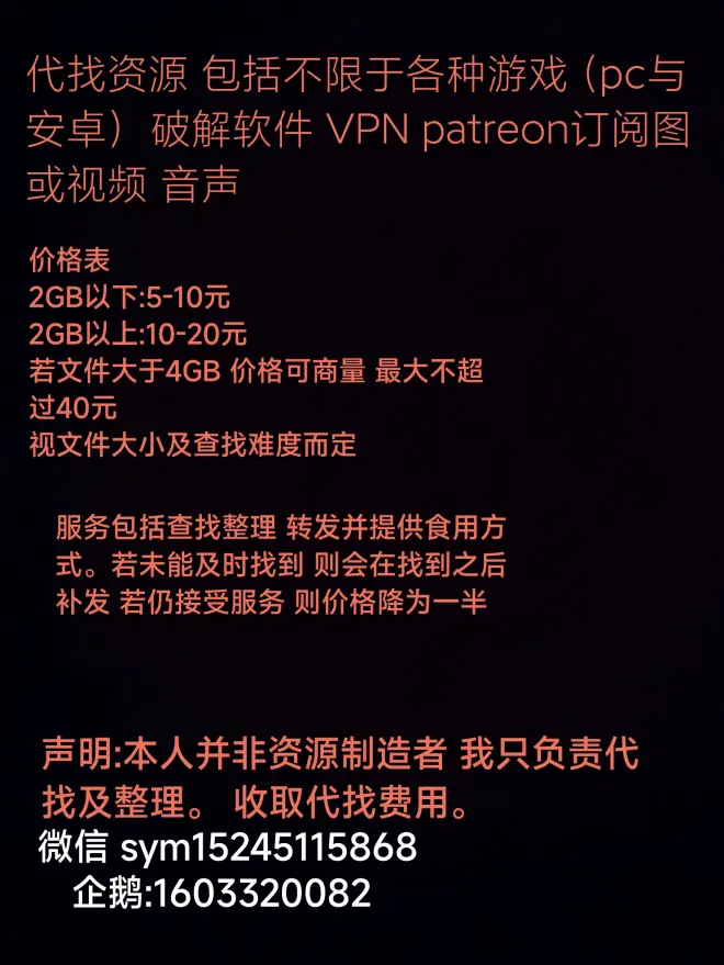 » 代找资源 私信商议