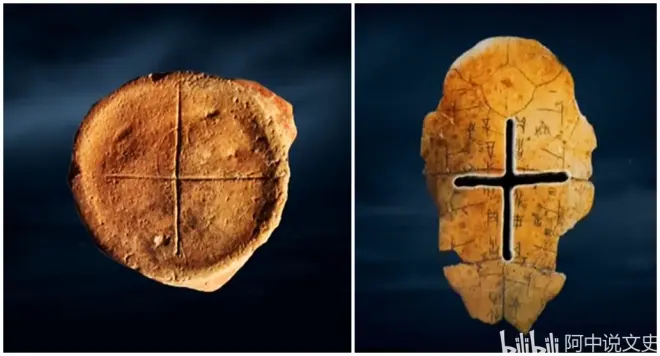 此外还有一些碗底,也出现了横竖线交叉的图形,数量从“一横一竖”到“五横五竖”不等,比双墩文化晚了3000多年的殷墟甲骨中,也出现了“十字”,经专家解读,它表示的是方向,即东、南、西、北、中。