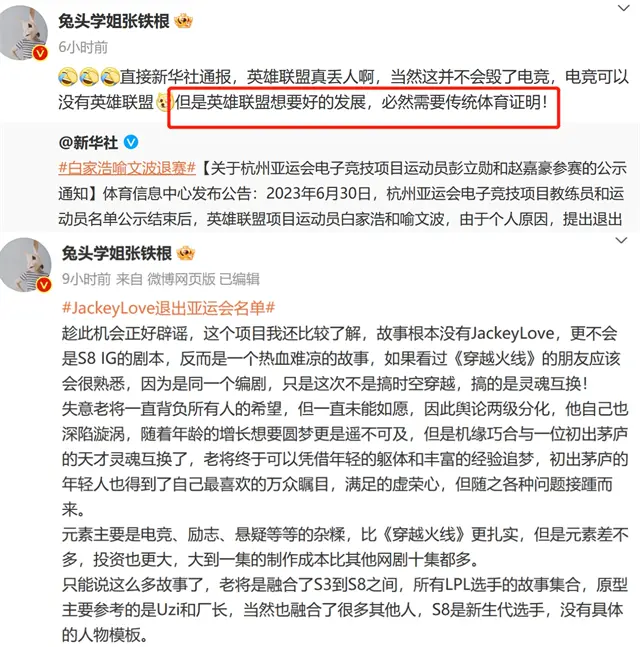网剧工作人员发文:“LOL发展必须靠传统体育”
