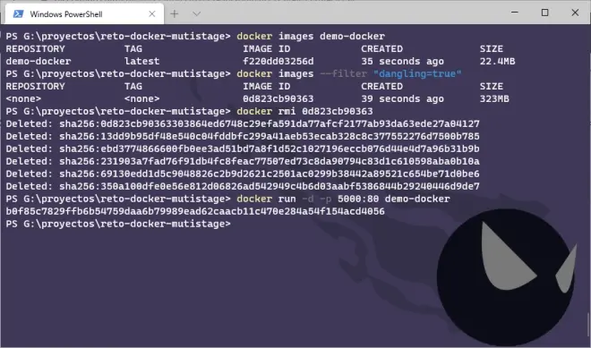 通过将 Dockerfile 修改为如下内容,我们最终得到的镜像大小为 91.5MB。请记住,来自第一阶段(第 1-4 行)的镜像不会被自动删除,Docker 将它保存在 cache 中,如果我们在另一个构建镜像过程中执行了相同的阶段,就可以使镜像构建更快。所以你必须手动删除第一阶段镜像。