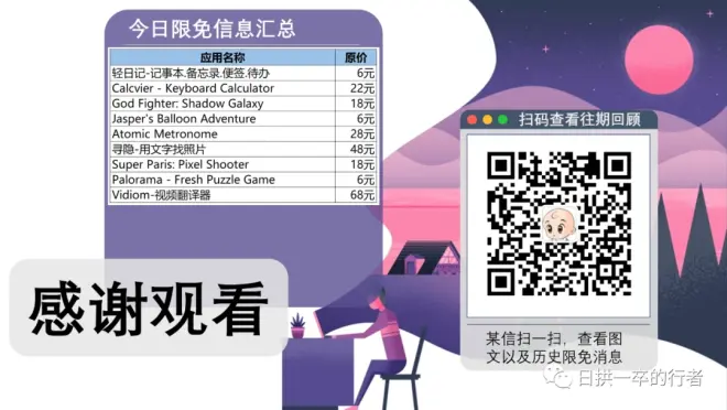 感谢大家的关注与点赞,公众号有历史限免图文,可能有您想要的应用仍在限免哦。