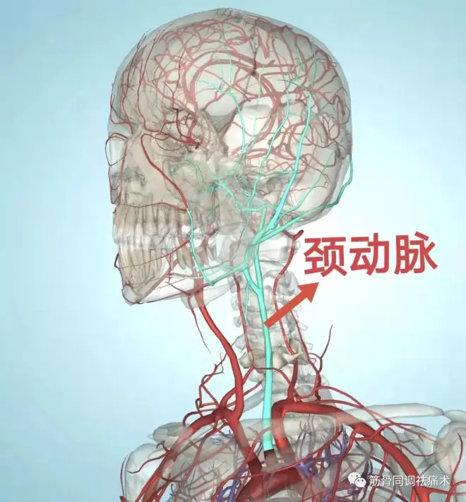 颈动脉,从“胸锁乳突肌”深层向上延伸,再从茎突舌骨肌与二腹肌的深层向上至颅内,我们大脑前3分之2部分的血液,主要来源于“颈动脉”。