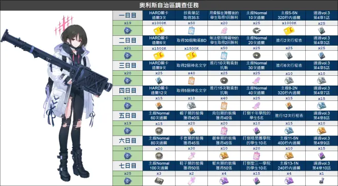 夏莱的任务导览 七日任务(日服3/23~4/20、国际服11/08-12/06)