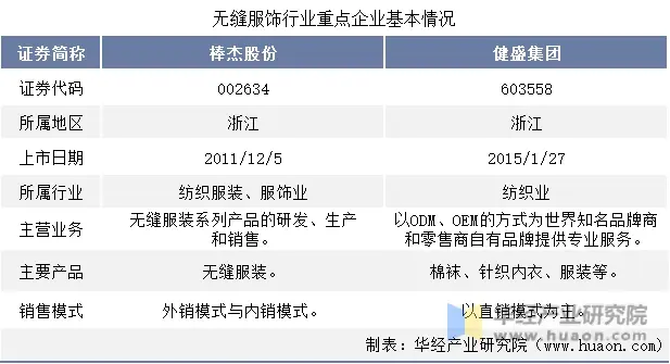 2022年中国无缝服饰行业重点企业洞析:棒杰股份VS健盛集团「图」
