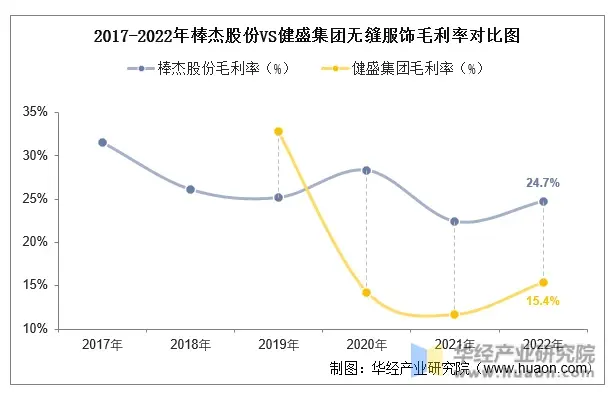 2022年,棒杰股份的无缝服饰行业毛利率为24.7%,较上年增加了2.3个百分点;健盛集团的无缝服饰行业毛利率为15.4%,同比增加了3.7个百分点。
