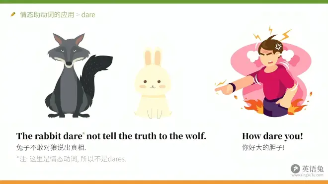 上图话语补充:从实义动词摇身一变,成为情态助动词。