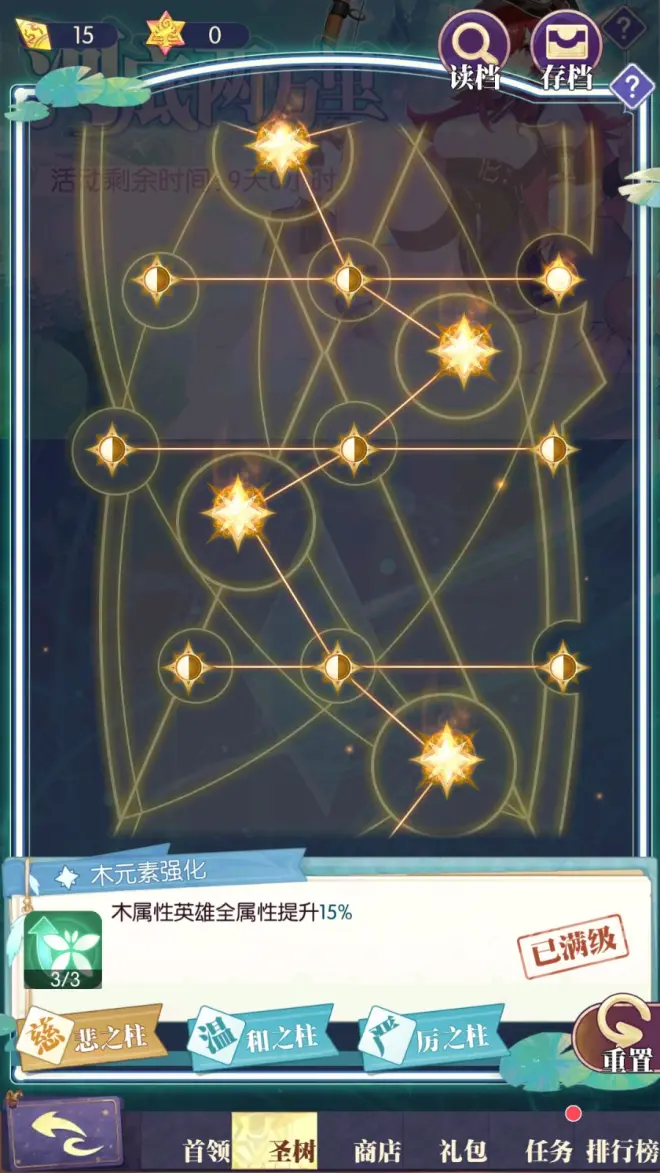8. 本活动拥有圣树系统,分别有三个支柱。点亮支柱中的「基点」、「质点」可增强英雄在活动中的强度或解锁指令天赋。点亮的道具「原数」、「原质」可通过活动礼包与任务获得。