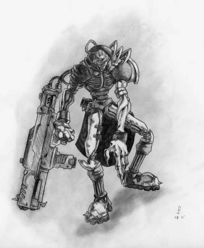 精英劫掠者的手臂、背包、头部、胯部和护膝都被完全重做了,原本的劫掠者模型仅存留下了极少的部分。精英劫掠者的钳子源自于罗瑞·斯旺的赛博义肢。