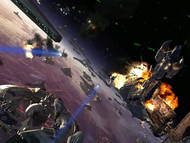 3630BBY,短暂征服银河系的永恒帝国被推翻,失控的自动化永恒舰队执行其原始程序消灭银河系一切生物,随即轰炸科洛桑,平民损失惨重,直到永恒同盟控制了舰队;