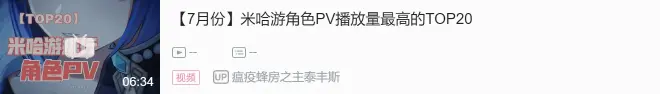 【7月份】米哈游角色PV播放量排行的评论 (共