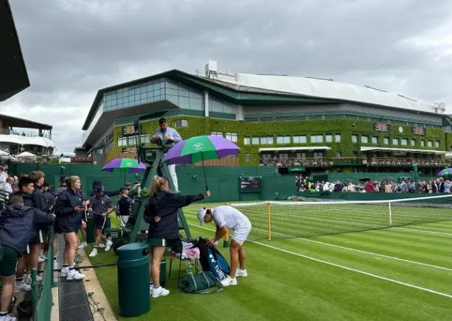 只是伦敦的天气说变就变,遭遇雨水侵袭之后,比赛不得不暂停。