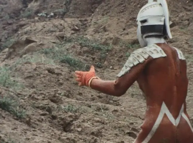 那是一个只有着黄土和山丘,没有光线,也没有爆炸,只有一个奥特战士和怪兽在地上摔跤,滚打,时而在山顶上,时而在海边,时而在泥地上。