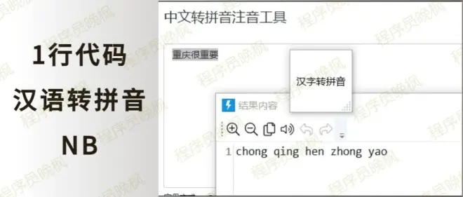 今天给大家分享一下,如何通过1行Python代码,实现汉语转拼音
