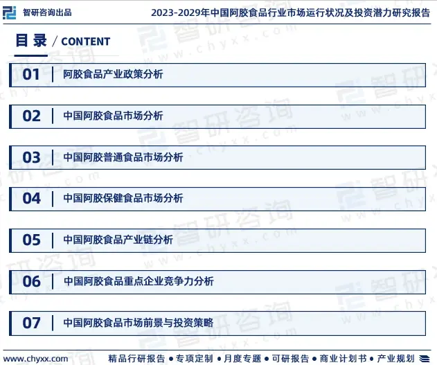 为方便行业人士或投资者更进一步了解阿胶食品行业现状与前景,智研咨询特推出《2023-2029年中国阿胶食品行业市场运行状况及投资潜力研究报告》(以下简称《报告》)。报告对中国阿胶食品市场做出全面梳理和深入分析,是智研咨询多年连续追踪、实地走访、调研和分析成果的呈现。