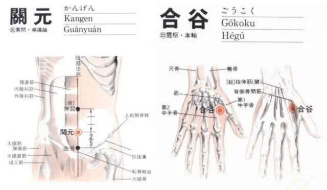 还可以选择关元穴、足三里穴、合谷穴按揉。合谷穴是重要的补气穴位,在按摩的时候有一个要点,就是要斜45度,向着手腕的方向按揉。