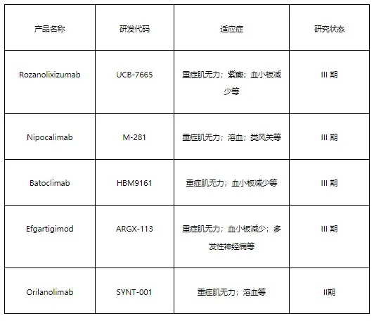 靶向FcRn治疗自免的产品除了Nipocalimab、Efgartigimod 在自免领域进度较快,还有多款靶向FcRn靶点,以自免疾病为适应症的产品在临床III期和II期阶段,篇幅所限,只搜集了以上几款。国内的和铂医药,引进开发的巴托利单抗(Batoclimab,HBM9161),应该是目前国内自免领域靶向FcRn靶点进度最快的产品。未来,随着FcRn生物学功能研究的不断深入,FcRn在药物开发中的前景也开始被广泛认可。衷心希望,这些基于FcRn开发的产品能够在临床试验中获得验证,早日为患者带来疗效更好、安全性更佳的治疗选择。