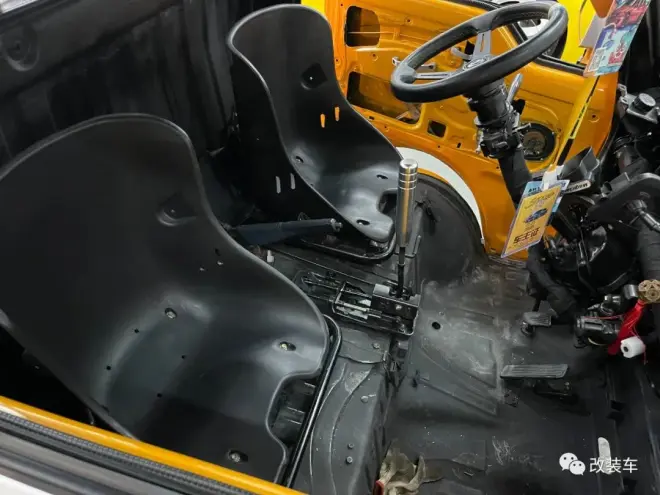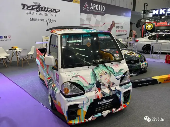 "外观方面,换上了DIY融合杠、DIY顽皮龙宽体、祖国版尾翼,加了个DIY简易版防滚架,最终还贴上了一身初音未来涂装,看起来非常战斗、非常有个性!让这辆原本并不起眼的小微卡变得很吸睛。"