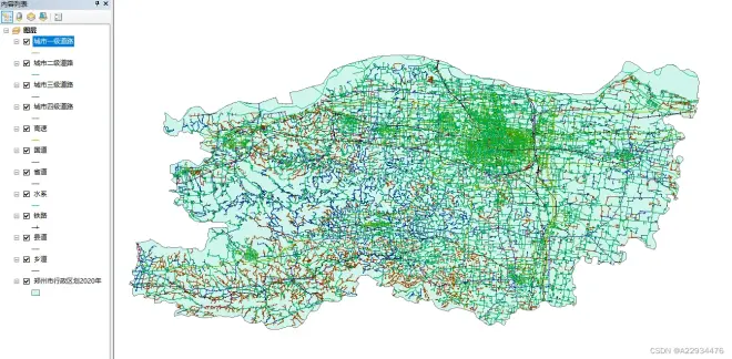 第一种数据:郑州市行政区划(2020)、城市一、二、三、四级道路、高速、国道、省道、铁路、县道、乡道