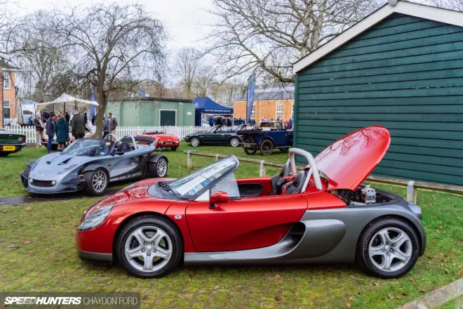 The Lotus was released in 2000, with the limited run of 340 cars all snapped up before release. Taking the already lithe, 725kg (1,598lb) Exige Series 1 and removing a large portion the bodywork netted a revised weight of just 675kg (1,488lb). Fibreglass panels barely clothed the extruded and bonded aluminium chassis, with no doors or roof to speak of.