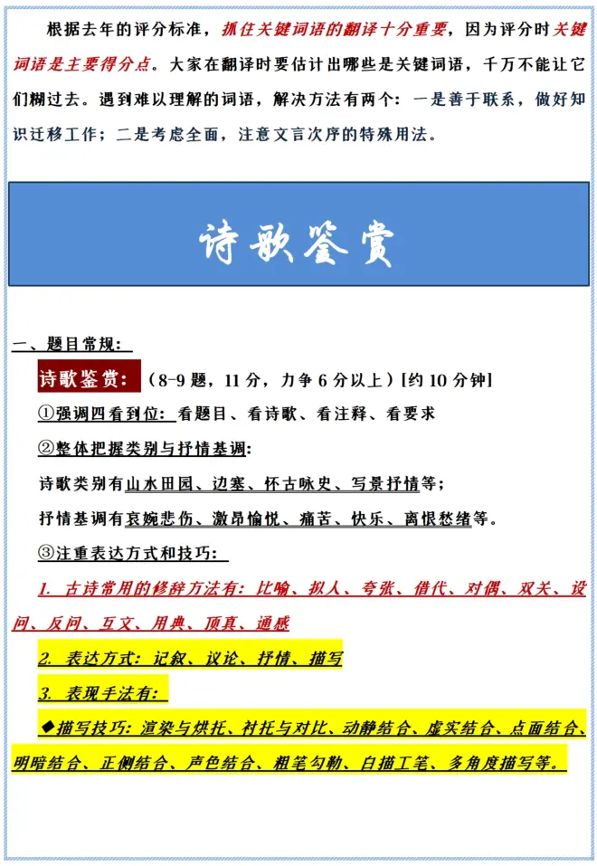 1高中语文古诗鉴赏答题技巧(包括意象题、情感题、语言题、手法题)