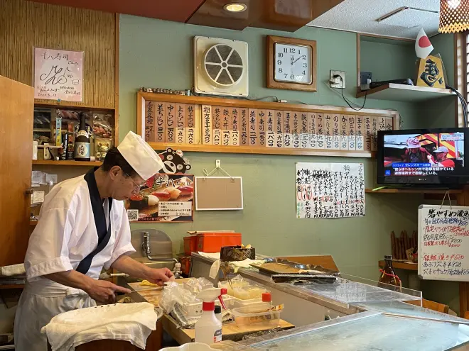 ・爱知县二人组吃完准备先走一步,大将就给おひさま们一起发了名片,背面写着大将的电话号码 ・之前有台湾的来Saitama Super Arena参加活动,结束后来店里,不过常客已经坐满了,就让他们只拍拍照片,然后常客说难得过一趟,稍微挤一挤就好,最后也都吃上了 ・「拍摄时不是包场的状态对吧」,「因为有已经预约的常客,也有会来吃午餐的一般人,就不太好包场,不过她们说就按平时的样子来,拍摄是12点半开始的,但是在这之前很快就来满了人,所以就早早拉闸了」 ・「我原本以为签名会很简单地同意的,然后就自己准备了1张,常客说也想要,就提前准备了一共8张左右吧,然后拍摄开始前跟经纪人说结束后能要签名吗,经纪人说『我们事务所很严格,拍照啊签名啊,很抱歉都不行的,因为倒卖的很多,所以握手会签名会以外是不允许的』,我就很委屈,帮你们这么多连照片签名都不给www」 ・「因为那孩子说特别喜欢玉子,所以在拍摄前就拿着平底锅给她做了份玉子烧,让她试试还没做成寿司的玉子是什么味道,她就特别开心,虽然视频里没有拍」 ・「那份鲍鱼寿司其实是其他常客请客给她的,问她说有没有不吃的,她说『何でも食べられます!』,然后就请了一份鲍鱼,还请了一份含芥末的干瓢卷」 ・「那孩子的兴趣是拍照,然后有很多相机对吧,最后不是给我拍了握寿司的纪念照片嘛,那时她说『親方記念だから撮らせてください』,我就说自己眼神不好拍起来不好看,那孩子就『大丈夫です!私自信があります!とりあえず仕事してるような感じで撮ります』然后连着拍了好多张」 ・「刚才提到的签名,真的很难得,我向经纪人说和客人们一起协力了,能不能至少留一张签名,然后经纪人就向上头询问后,说这么承蒙关照,美玖酱也这么开心,然后才得到同意的」 ・「在澳门没吃到过这么软绵的星鳗,特别好吃」,「谢谢,死掉的星鳗啊,在市场上能以低价格买到,但是死掉之后,不管再怎么样都没办法做得这么软,所以要趁它还活着时处理,然后马上捏寿司才行。吃起来没什么刺对吧,平时客人都觉得星鳗刺很多肉很硬不喜欢吃,『就当被骗吃一次试试』之后大家都赞不绝口」 ・「这个煮詰め(星鳗的蘸酱),需要把200条以上的星鳗的骨头和头部,用大锅煮出汁,过滤去掉苦涩味,然后酱油为底,放入味淋什么的,要花上3天时间,最后和沿用至今好几年的酱混合在一起,才算完成,最后的最后如果有焦味,就完全用不了了,非常麻烦,所以像烤串店那样被简单地称作タレ(酱汁),会有点无奈www」