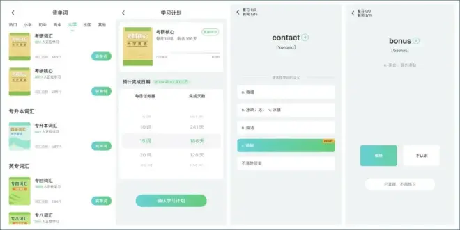 它提供了丰富的词库,满足你各个阶段的学习需求,支持个性化的背单词计划,支持设置每日背单词数量和完成天数。