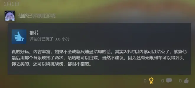 推荐手柄游玩,音乐也是不错的,最后一段CG强行不能停止,而且要打两次就是CG怎么都要过一遍,应该是为了拖时间吧,其实你要是奔着白嫖去不体验整个游戏的全貌,其实这点时间无伤大雅,当然这边不是建议你白嫖。