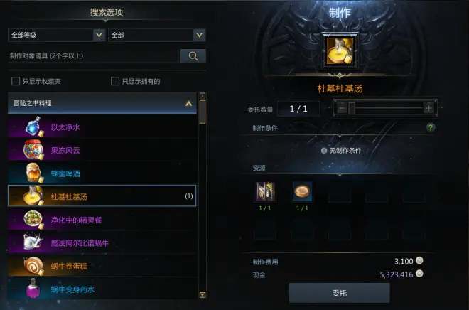 制作料理-杜基杜基汤,需要提前准备3100银币