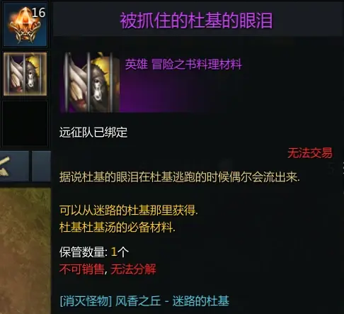料理素材1-被抓住的杜基的眼泪获取方式:在风香之丘刷怪获取