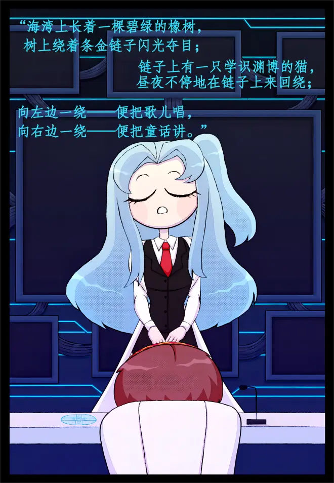 “橡树猫”和安吉拉开头念的诗出自于《鲁斯兰和柳德米拉》,是普希金的一篇长篇童话叙事诗,在这首长诗里,普希金采用了许多民间故事的材料,如魔法师、女水妖、隐身帽、巨头与长须矮人的战斗以及鲁斯兰的死而复活等,都是取材于斯拉夫民间传说。由于作者catram是说俄语的,所以漫画里的主管才会说“这个故事我五岁就听过了”。