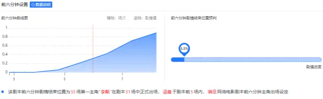 通过综合分析,预估该剧本前6分钟剧情结束于5场剧情前5场中,最高冲突场次为5场
