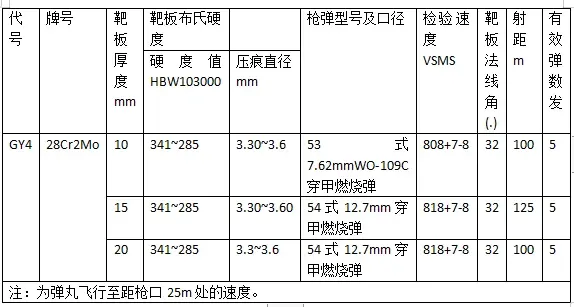 适用于装甲车辆用厚度为10mm、12mm、15mm、20mm、25mm和30mm的GY4钢板