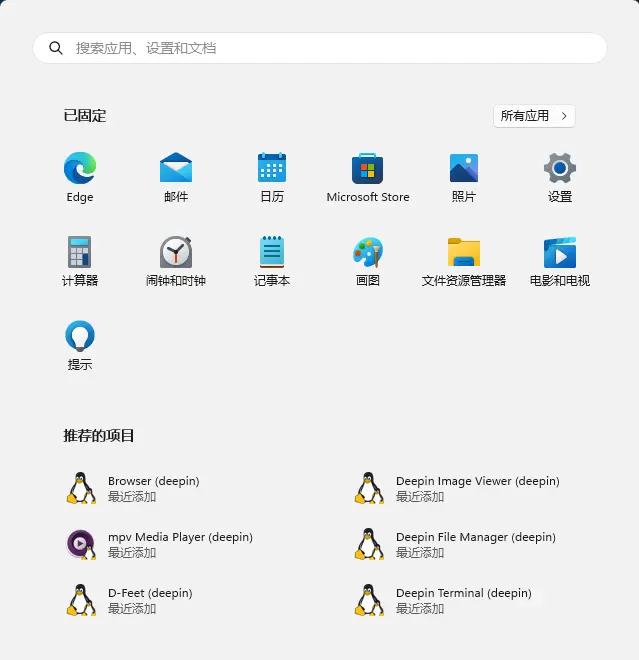 在完成deepin WSL应用安装后,再启动一次,Windows菜单栏下会显示注册安装的deepin应用。