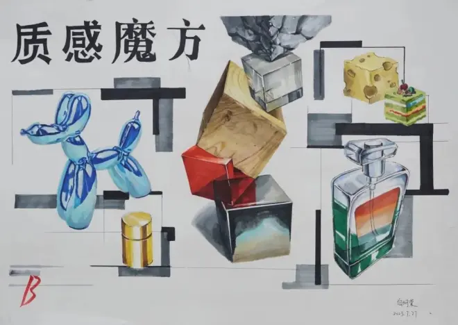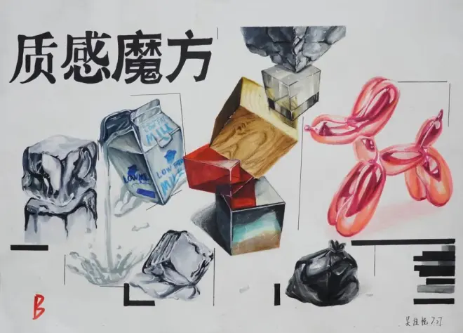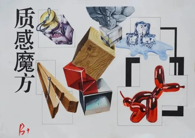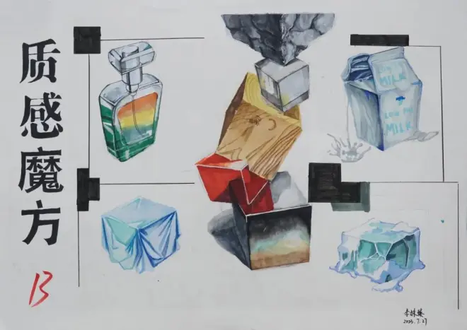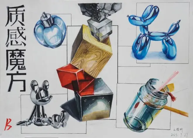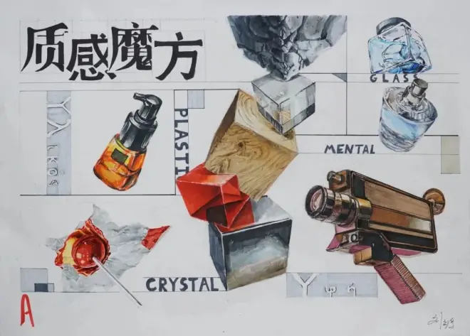 北京传奇画室丨2024届传奇设计班七月基础设计课「质感魔方」主题设计稿优秀作品展示