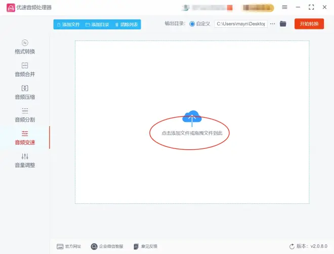 步骤3、在文件上传成功之后,需要按照实际的需求和情况,将一些参数进行更改设置,比如倍速设置、输出目录等等,都可以进行更改;而后直接点击开始处理就可以了。这样的话,音频文件的播放速度就会被调整了。后续我们只要在输出目录中找到已经更改好的文件就可以了。
